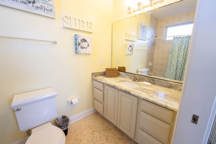 Additional amenities include a convenient elevator which travels from the ground level to the top floor suite to make loading/unloading a breeze, park style charcoal grill and a private screened pool with optional pool heat ($400 + tax for the week). The carport has covered parking for two vehicles, a fish cleaning sink and enclosed outdoor shower. A pet friendly home, we allow up to 2 dogs 50lbs or less with advance approval for a $150 + tax pet fee.