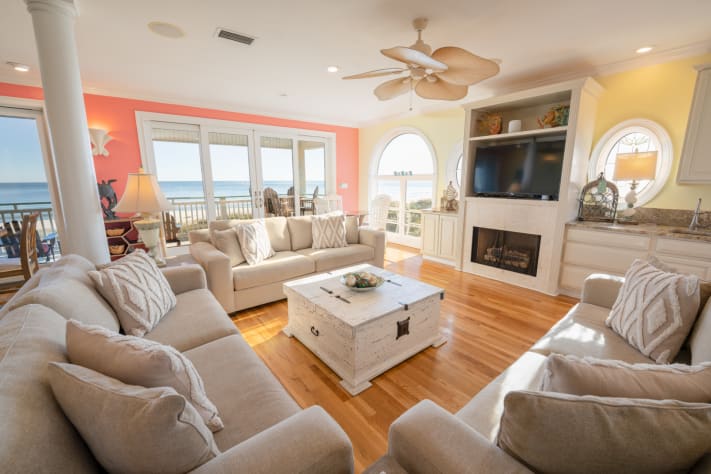 This spacious, 8BR/6.5 BEACHFRONT dream home boasts 6 King beds, 2 Double Bunk Beds (Double/Twin), 1 Daybed w/ Trundle and 2 Queen Sleeper Sofas to accommodate up to 20 total guests, perfect for multiple families!