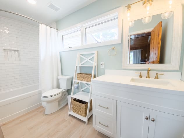 Two King bedrooms with en-suite bathrooms frame the great room, each with access to the Bayfront sundeck. The third bedroom is a large suite and can be found on the top floor with vaulted ceilings, 2 Queen beds, full bathroom and Bayfront deck to enjoy the panoramic water views!