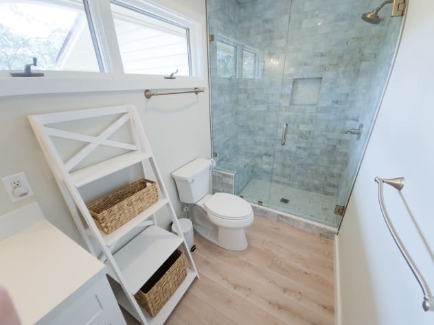 Outdoor amenities include under-house parking, a fish cleaning station, enclosed outdoor shower and park-style grill. Launch your kayaks or SUP boards right from the bay beach at the property, fish off the dock and enjoy the sunset.