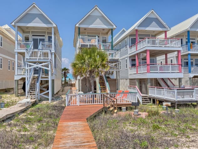 As much as you will enjoy spending time inside this beautifully decorated home, the ground level boasts a large, gated beachfront sun and covered deck with enclosed outdoor shower, eating spaces, and access to a park-style charcoal grill and beach boardwalk. The covered outdoor sofa will be your favorite place to nap in between beach visits.